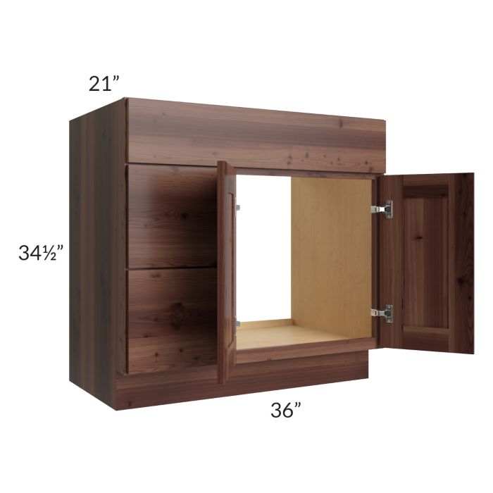 Farmhouse Walnut Shaker 36" Vanity Sink Base Cabinet with Drawers on the Left