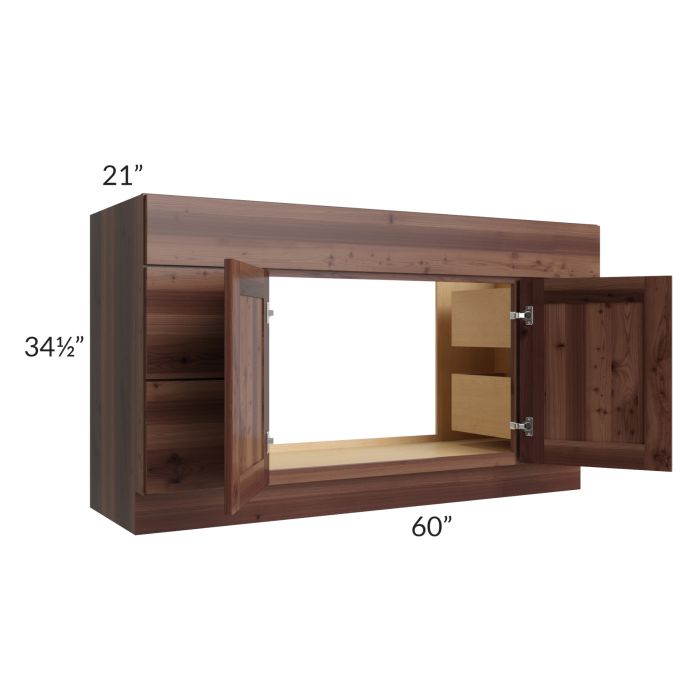 Farmhouse Walnut Shaker 60" Vanity Sink Base Cabinet
