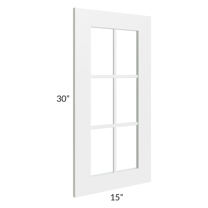 Mullion glass door for a 15"W x 30"H wall cabinet that will match the door style of the cabinet and has 6 panes. The glass is also included.