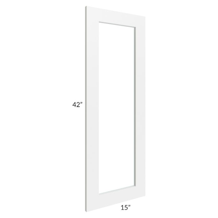 Glass door for a 15"W x 42"H wall cabinet that will match the door style of the cabinet and has plain glass. The glass is also included.