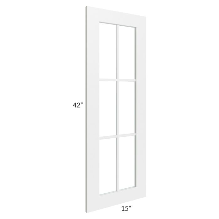 Mullion glass door for a 15"W x 42"H wall cabinet that will match the door style of the cabinet and has 8 panes. The glass is also included.