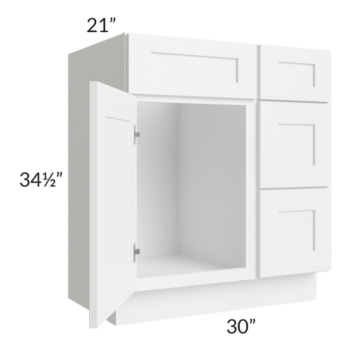 Frosted White Shaker 30" Vanity Sink Base Cabinet (Drawers on Right)