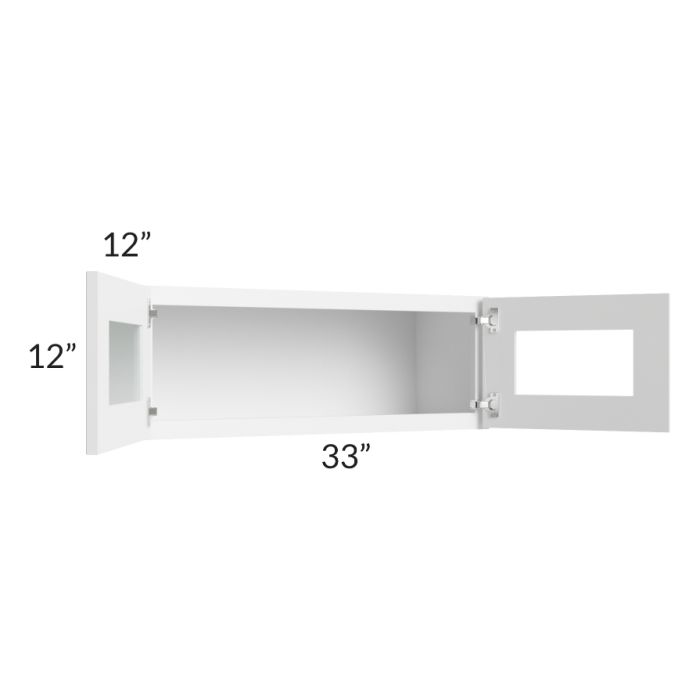 Frosted White Shaker 33x12 Decorative Wall Cabinet with Plain Glass