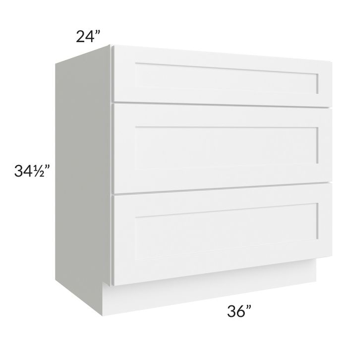 Frosted White Shaker 36" 3-Drawer Base Cabinet