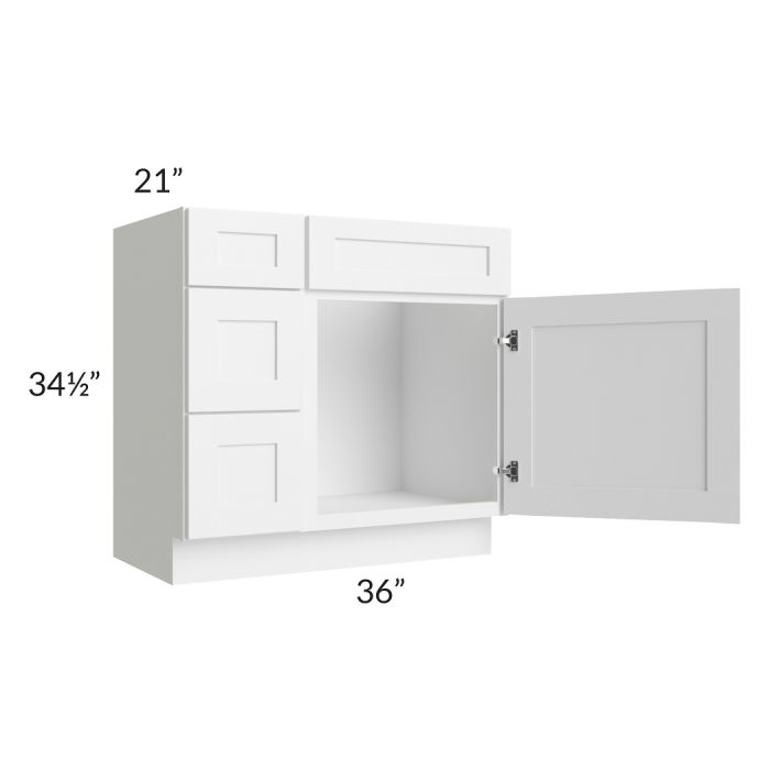 Frosted White Shaker 36" Vanity Sink Base Cabinet (Drawers on Left)