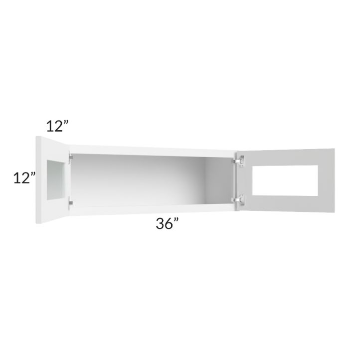 Frosted White Shaker 36x12 Decorative Wall Cabinet with Plain Glass