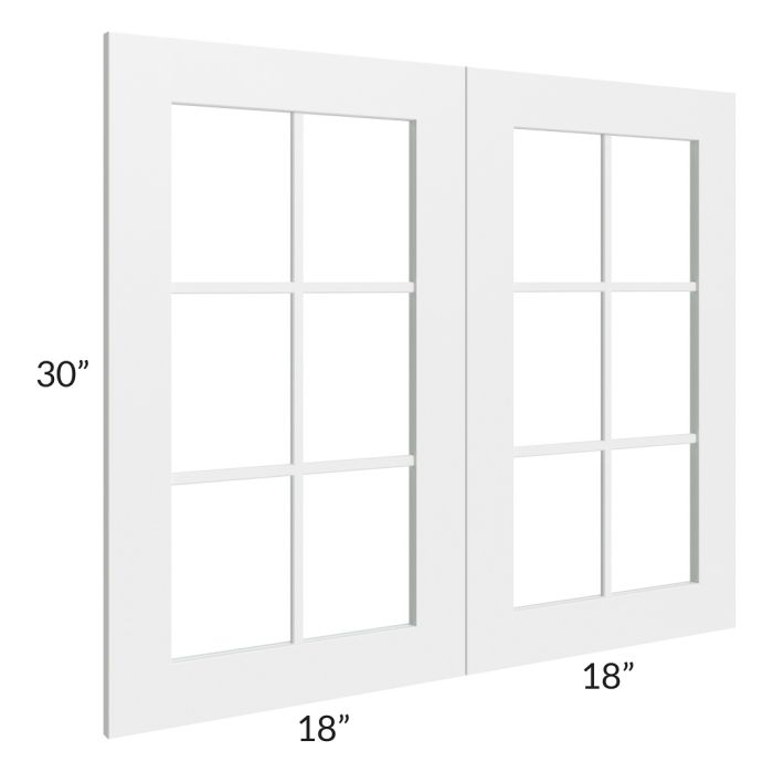 Set of mullion glass doors for a 36"W x 30"H wall cabinet that will match the door style of the cabinet and has 6 panes. The glass is also included.