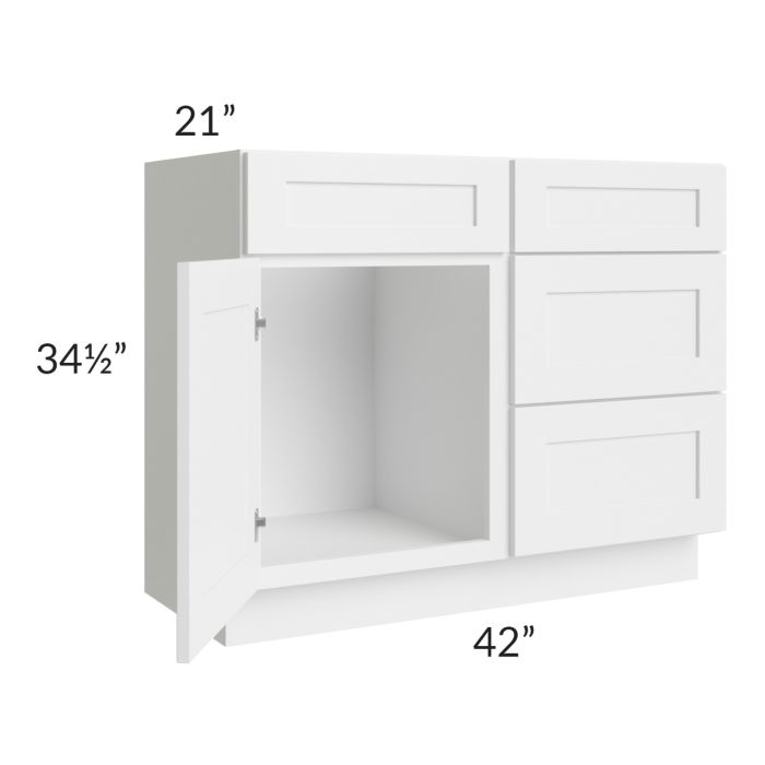 Frosted White Shaker 42" Vanity Sink Base Cabinet (Drawers on Right)