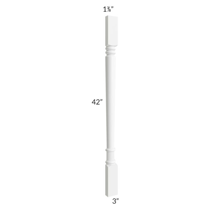 Split corner decorative leg that is 3" wide, 42" high and 1-3/8" deep. The top flat section is 7" high and the bottom flat section is 7-1/4" high.