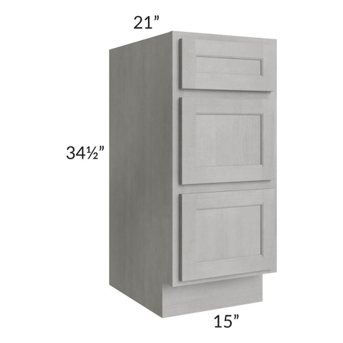 Gramercy Grey Mist 15" Vanity 3-Drawer Base Cabinet
