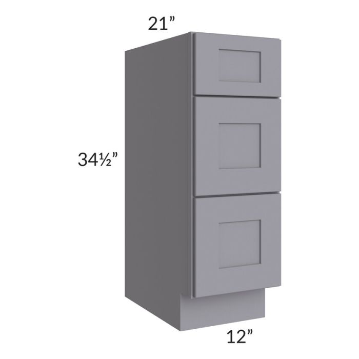 Description / Graphite Grey Shaker 12" 3-Drawer Vanity Base Cabinet