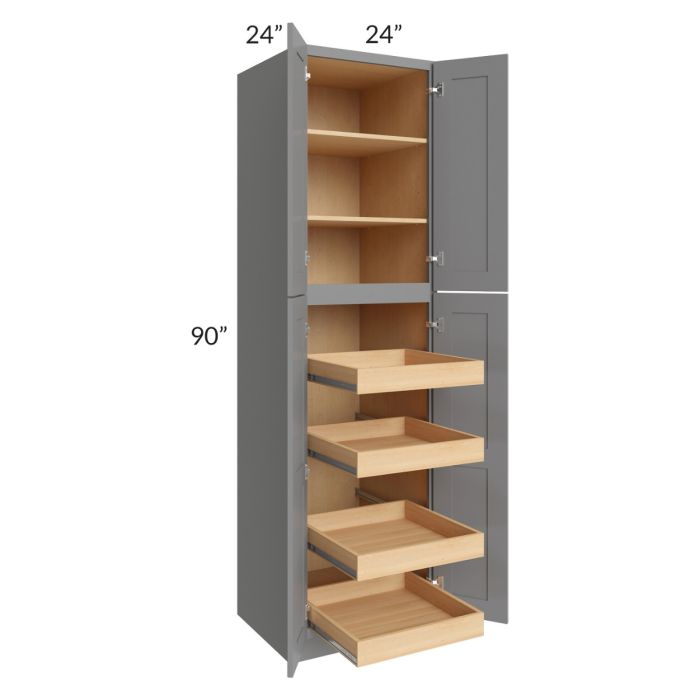 Graphite Grey Shaker 24x90x24 Wall Pantry Cabinet with 4 Rollout Trays