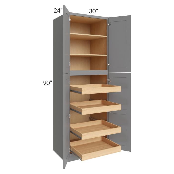 Graphite Grey Shaker 30x90x24 Wall Pantry Cabinet with 4 Rollout Trays