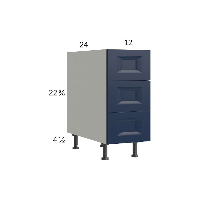 Description / Harbor Navy 12" 3-Drawer Desk Base Cabinet