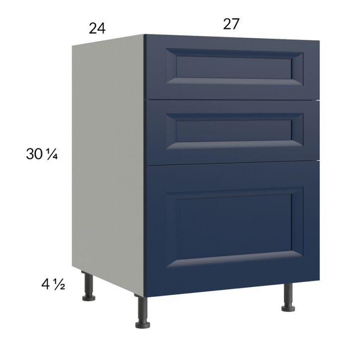 Description / Harbor Navy 27" 2-Drawer Range Base Cabinet with 1 False Drawer Front