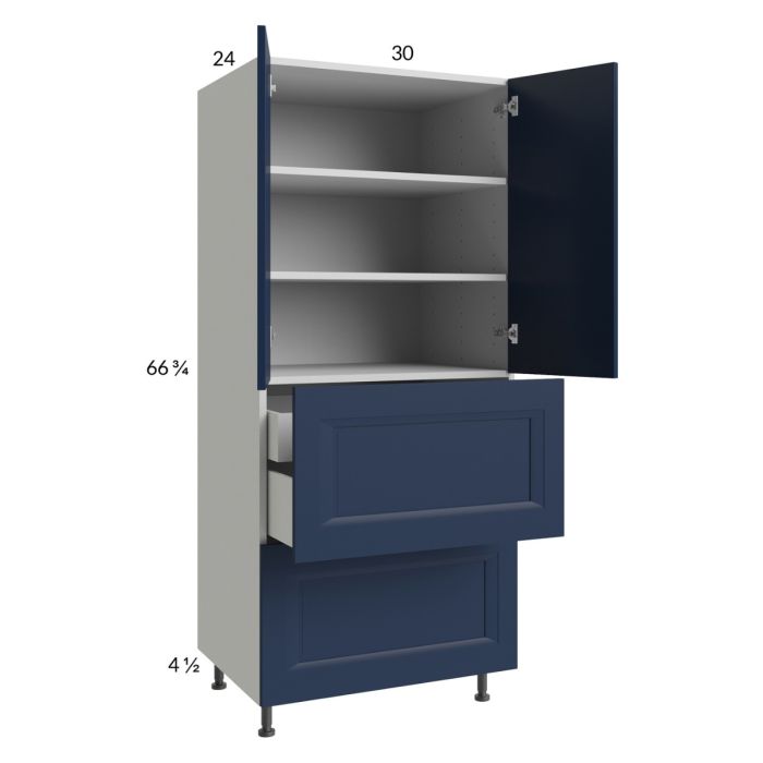 Description / Harbor Navy 30x71-1/4 Utility Cabinet with 2 Doors, 2 Drawers and 1 Inner Drawer
