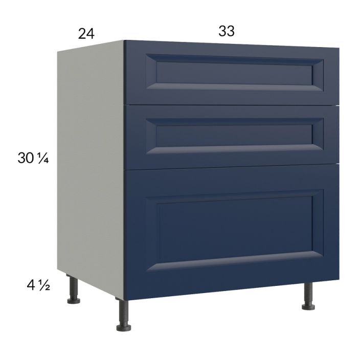 Description / Harbor Navy 33" 2-Drawer Range Base Cabinet with 1 False Drawer Front