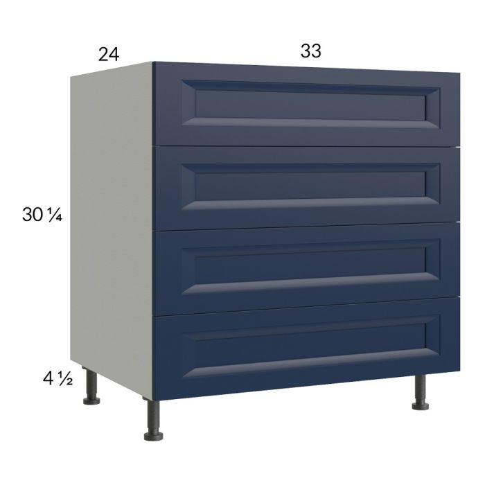 Description / Harbor Navy 33" 3-Drawer Range Base Cabinet with 1 False Drawer Front