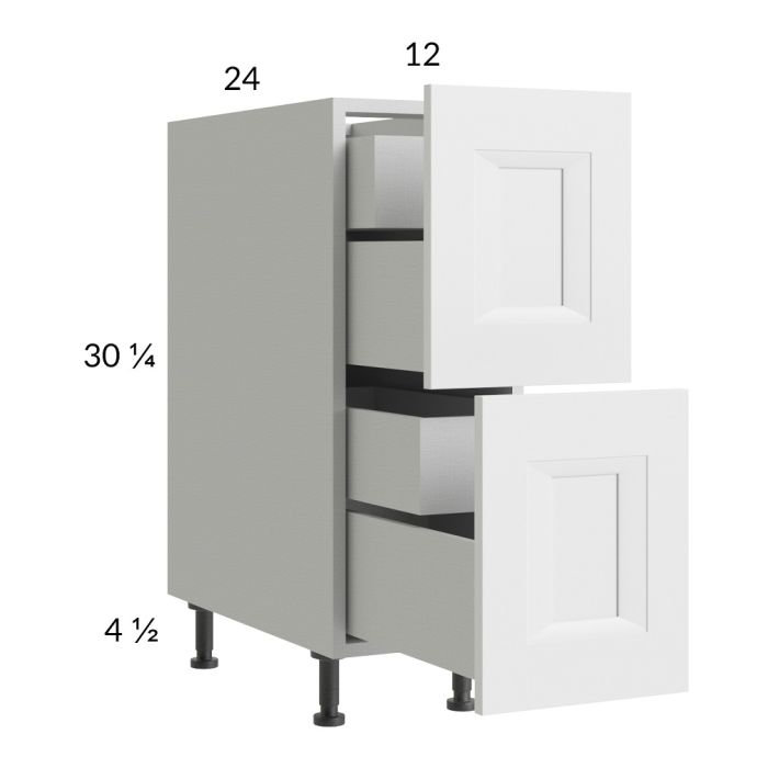 Harbor White 12" 2-Drawer Base Cabinet with 2 Inner Drawers