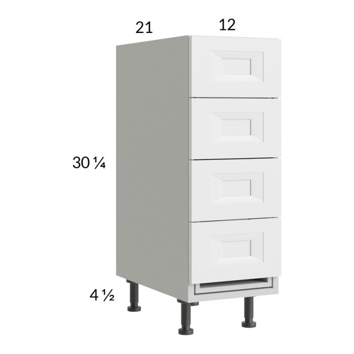 Harbor White 12" 4-Drawer Vanity Base Cabinet