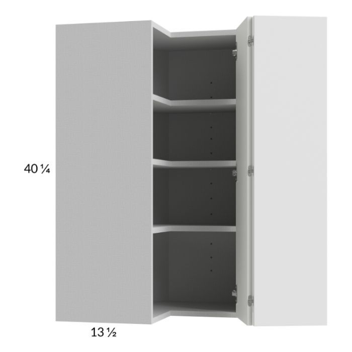 Wall easy reach corner cabinet with a bi-fold door that takes up 24" from the corner out, on each wall. This cabinet comes with 2 shelves.