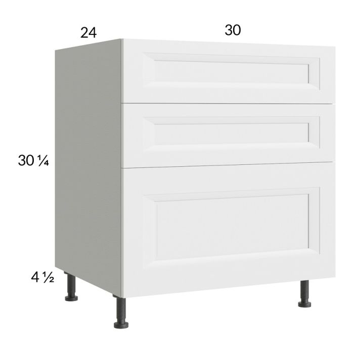 Description / Harbor White 30" 3-Drawer Base Cabinet