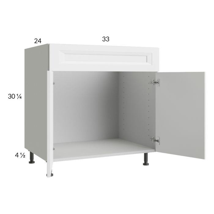 2 door sink base cabinet with 1 false drawer fronts and no shelves.
