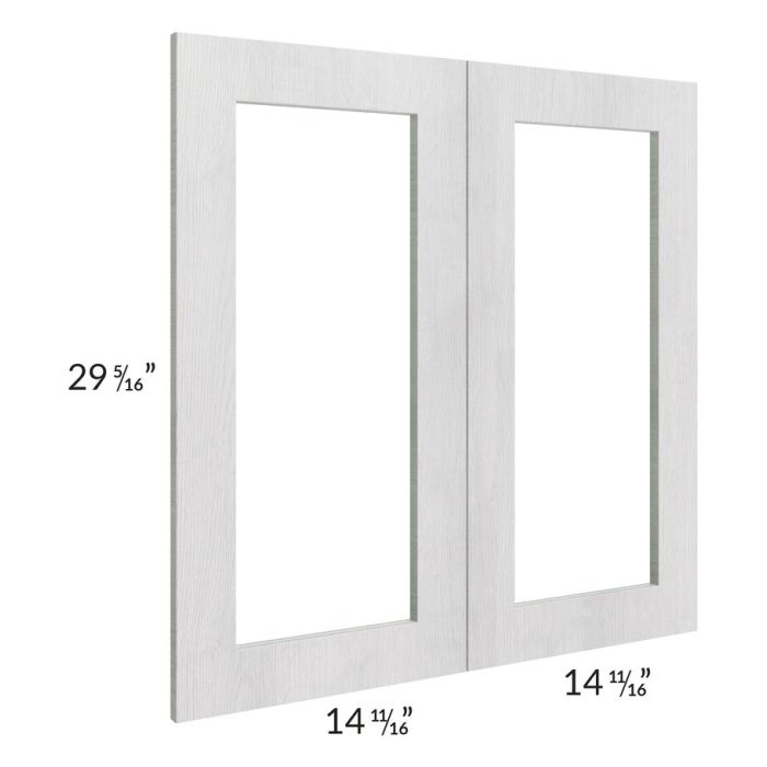 Glass door for a wall cabinet that is 30" wide and 30" high. This is a 2 piece set with clear glass included. The actual cabinet must be purchased separately.