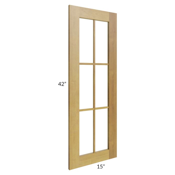 Glass door for a 15"W x 42"H wall cabinet that will match the door style of the cabinet and has plain glass. The glass is also included.