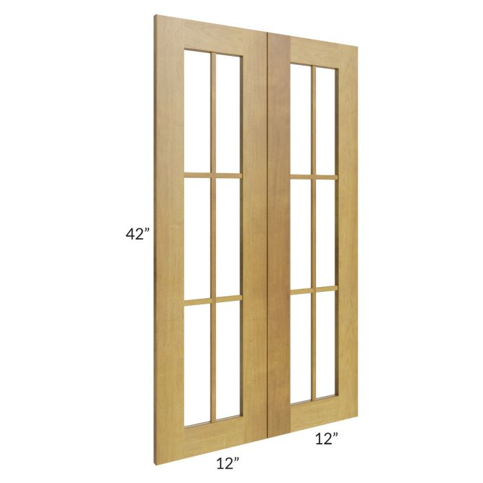 Set of mullion doors for a 24"W x 42"H wall cabinet that will match the door style of the cabinet and has plain glass. The glass is also included.