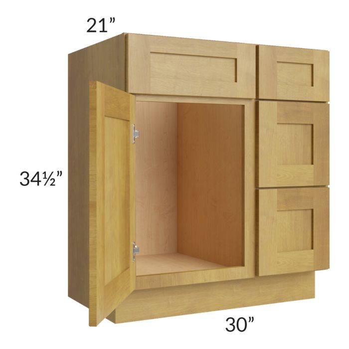 Heritage Amber Shaker 30" Vanity Sink Base Cabinet (Drawers on Right)