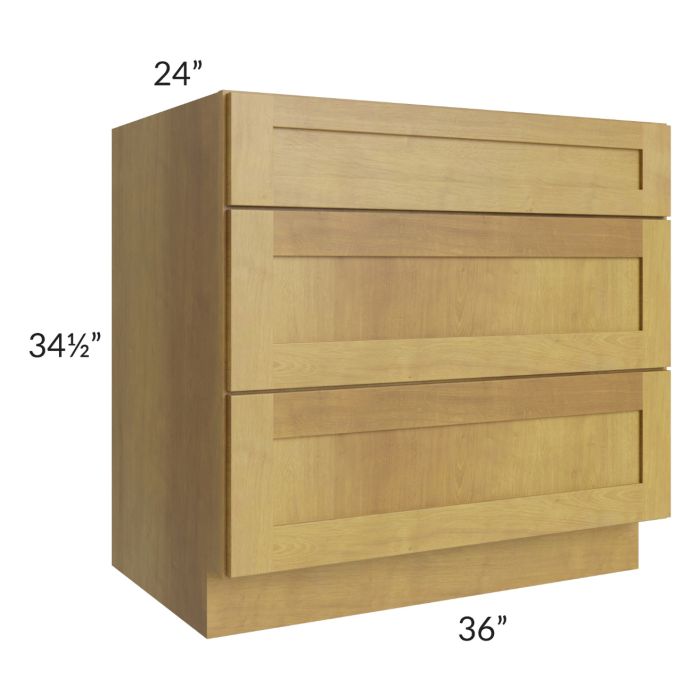 Heritage Amber Shaker 36" 3-Drawer Base Cabinet