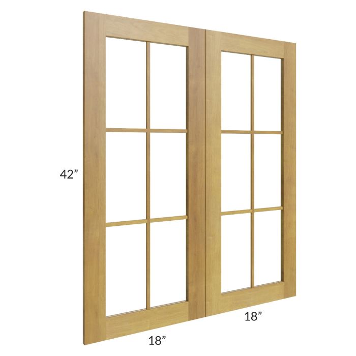 Set of mullion doors for a 36"W x 42"H wall cabinet that will match the door style of the cabinet and has plain glass. The glass is also included.