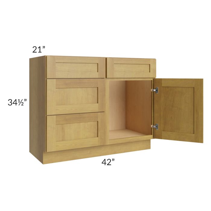 Heritage Amber Shaker 42" Vanity Sink Base Cabinet (Drawers on Left)