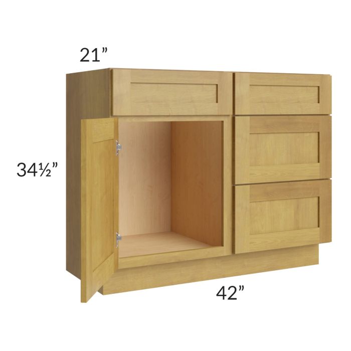 Heritage Amber Shaker 42" Vanity Sink Base Cabinet (Drawers on Right)