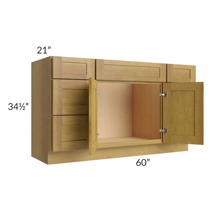 Description / Heritage Amber Shaker 60" Vanity Sink Base Cabinet with Drawers