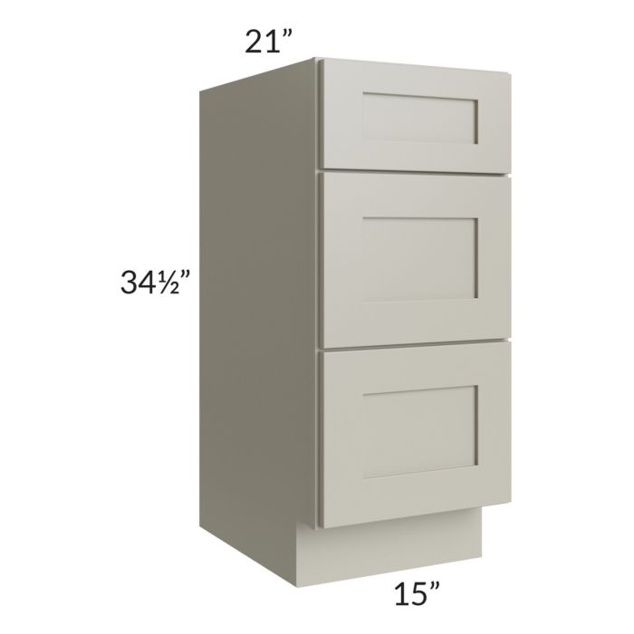 Kingston Pearl Grey Shaker 15" 3-Drawer Vanity Base Cabinet