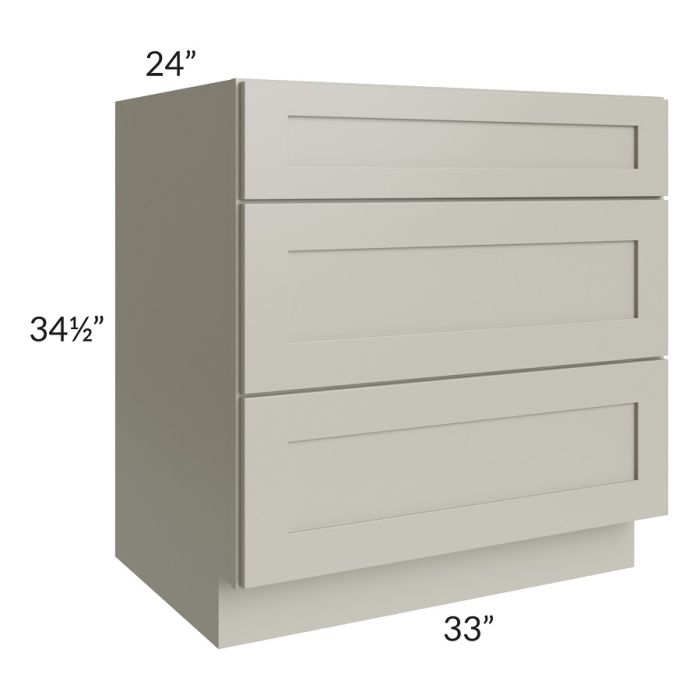 Description / Kingston Pearl Grey Shaker 33" 3-Drawer Base Cabinet