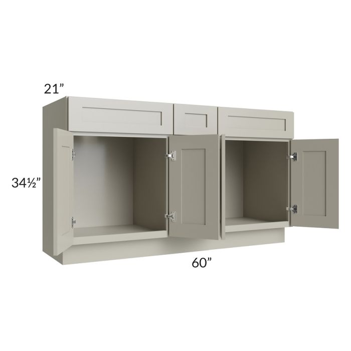 Description / Kingston Pearl Grey Shaker 60" Vanity Cabinet with 3 Drawers