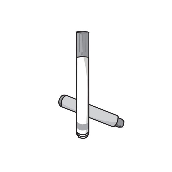 Touch up kit that includes a putty stick, paint marker, and a foam sponge.