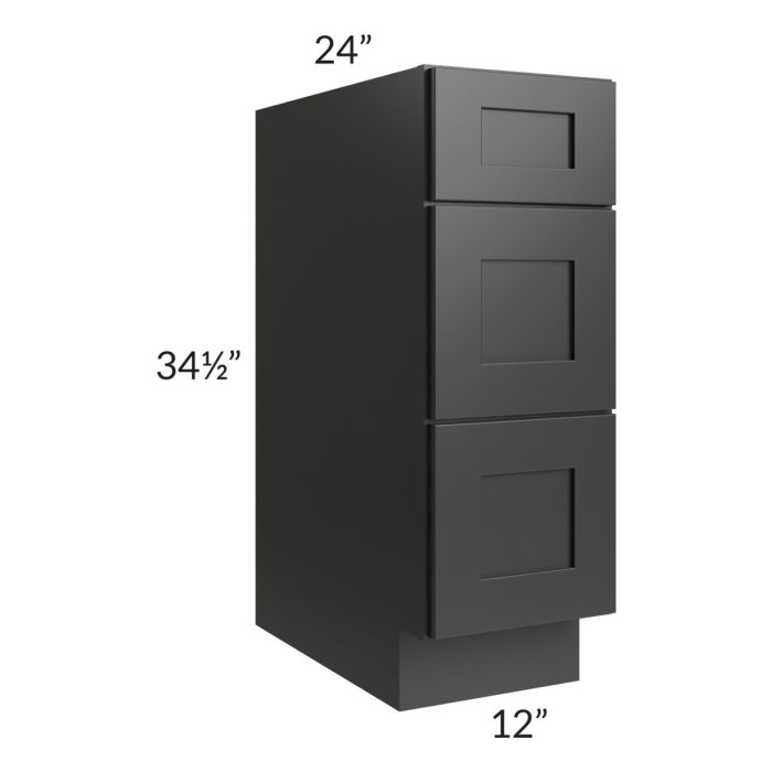 Kingston Steel Grey Shaker 12" 3-Drawer Base Cabinet