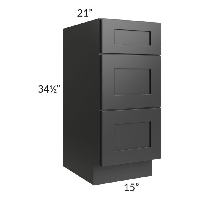 Description / Kingston Steel Grey Shaker 15" 3-Drawer Vanity Base Cabinet