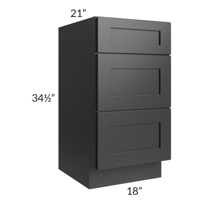 Description / Kingston Steel Grey Shaker 18" 3-Drawer Vanity Base Cabinet