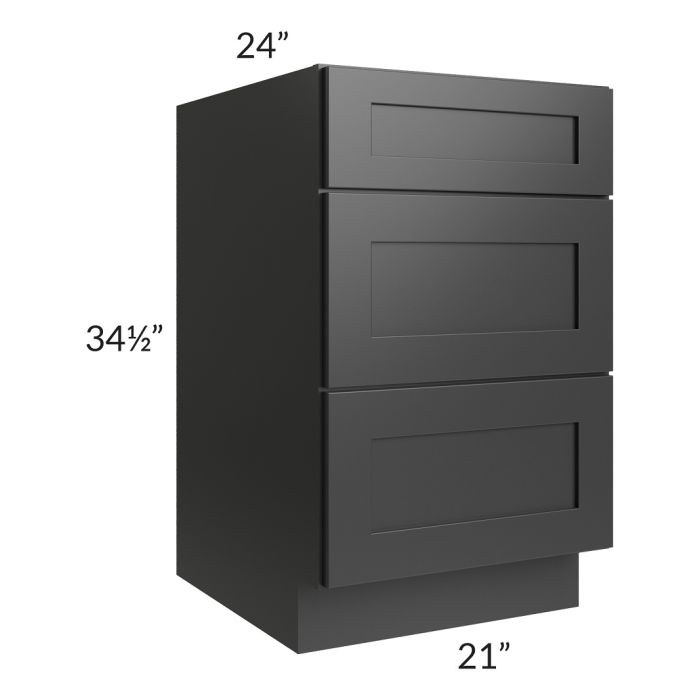 Kingston Steel Grey Shaker 21" 3-Drawer Base Cabinet