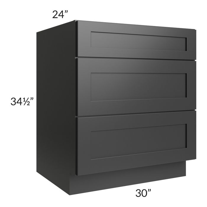 Kingston Steel Grey Shaker 30" 3-Drawer Base Cabinet