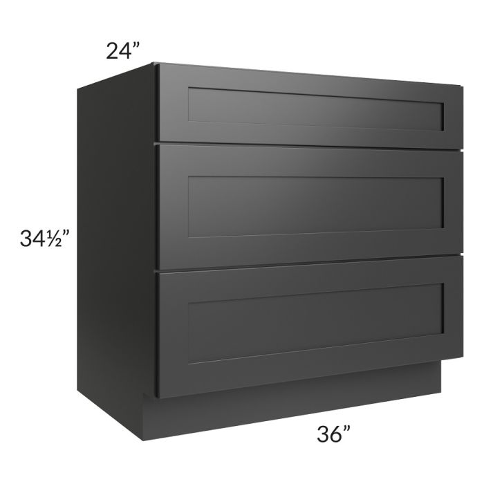 Kingston Steel Grey Shaker 36" 3-Drawer Base Cabinet