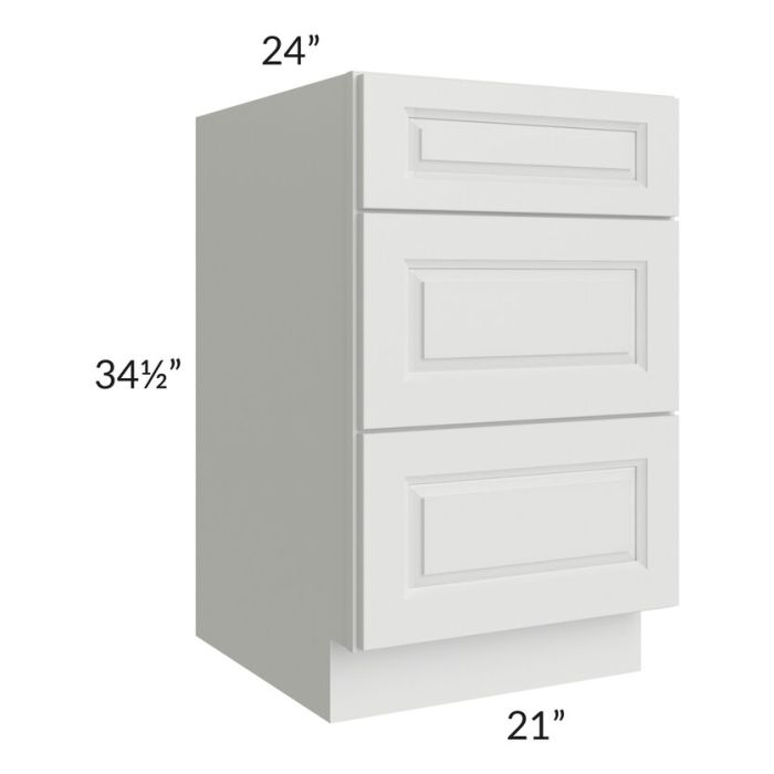 Description / Lakewood White 21" 3-Drawer Base Cabinet