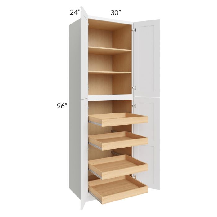 Lakewood White 30x96x24 Wall Pantry Cabinet with 4 Rollout Trays - Low stock through mid May