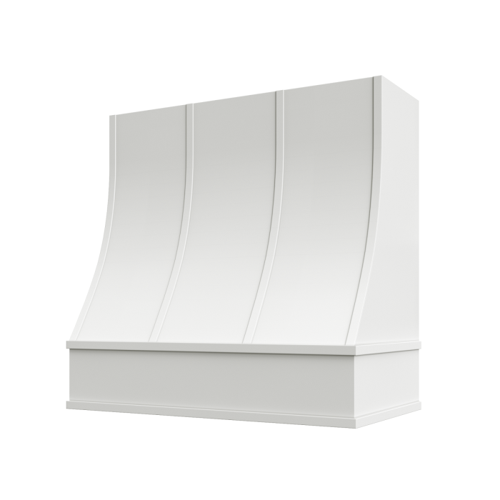 Description / Lakewood White Charlotte Strapped Sloped Hood with Block Molding