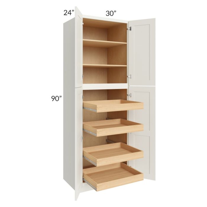 Linen Shaker 30x90x24 Wall Pantry Cabinet with 4 Rollout Trays